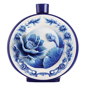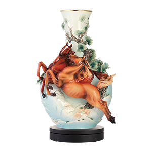 Auspiciousness and Peace White Porcelain Vase Elephants are an auspicious beast, hence the saying “the coming of the elephants to the nation signals the coming heyday of an era.” The artwork depicts a child holding a jade Ruyi and riding on an auspicious elephant; behind the child is a full, round bottle representing peace and happiness. The Sea Wave and Rocky Cliff motif that adorns the auspicious elephant’s caparison is a symbol of great fortune and prosperity while the whole work conveys the message of a Golden Age.