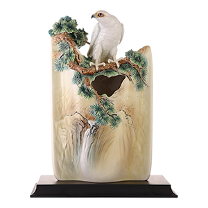 Elegant Cranes – Cranes sculptured porcelain vase This piece draws on Chinese Roses and Two Cranes by the Qing imperial painter Giuseppe Castiglione, collected by the National Palace Museum in Taiwan. Giuseppe’s painting features young cranes, a subject rarely seen elsewhere; however, the painting was a favorite of Qing Emperor Qianlong, who once praised it with a poetic text that goes, “Though young and green, the baby cranes are determined to soar high.” This appealing vase vividly shows the subjects of Giuseppe’s painting: Pink Chinese roses are in full bloom, while a parent crane turns its head to comb its feathers in a leisurely manner, with the other lovingly gazing at its toddling chicks. As a home decoration, this vase symbolizes peace and brings happiness. Featuring a family of cranes, a symbol of longevity, this vase makes a top choice for a birthday present, highly sought after by men of good taste. エレガント クラウンズ ベース こちらの花瓶は、台北國立故宮博物院に収蔵されている清朝宮廷画家ジュゼッペ・カスティリオーネ(Giuseppe Castiglione)によって描かれた「畫花陰雙鶴」をもとに制作されました。 ジュゼッペ・カスティリオーネの絵画は、他ではまず見られない幼い二羽の鶴をモチーフに描かれました。こちらの絵画は清の第六代皇帝乾隆帝のお気に入りで、彼は詩の中で「小さな鶴はまだまだ若くて幼いが、空高く舞い上がるかのような勢いである」と読み称賛しました。 こちらの花瓶はジュゼッペ・カスティリオーネの絵画を端的に表現し、ピンクのバラが満開に咲き誇る中、一羽の親鶴がゆっくりと頭を回して羽をとかし、もう一羽の親鶴はよちよち歩きの幼鶴を愛おしそうに見つめている姿を描きました。 家の装飾品として、平和を象徴し、幸せに包まれた豊かな暮らしをもたらすかのようです。長寿を象徴する鶴の家族をテーマにしたこちらの花瓶は、お誕生日や洗練されたプレゼントとして相応しいです。