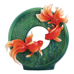 Great Happiness – Goldfish Design sculptured porcelain vase Close your eyes and follow your heart to a carefree world evocative of Chinese expressionist ink painting, where you can play with the two goldfish. In the rippling and sparkling pond, the emerald lotus leaves sway gently in this wonderful moment of time that is captured forever in porcelain. The fish come out and play about at their ease - that is the happiness of fish. ~ Zhuangzi (an influential Chinese philosopher)