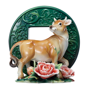 Prosperous Life Pig Porcelain Figurine The pig symbolizes wealth and good luck in Chinese culture. The designer depicts the pig surrounded by ancient Chinese coins and adorned with persimmon patterns, wishing collectors wealth, honor, and prosperity in everything.