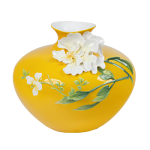 「長春獻壽」瓷瓶以《畫交阯果然》畫為創作靈感,珍禽異獸,唯妙唯肖,滿樹碩果,象徵桃壽滿福,也祝賀長春長喜。