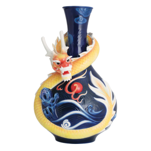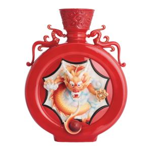 設計師遙想著詩人李白離開白帝城,搭乘舟船順江水而下之景。延路上,山川風景美不勝收,江岸的猿猴此起彼落啼叫。愉悅的心情迴盪在山川間,大自然的美撫慰失意者的心。若在此時,仰頭看見山邊的靈猴正摘著壽桃,「靈猴獻壽」之吉兆更是不言而喻。