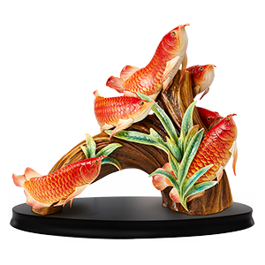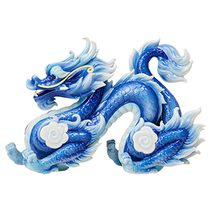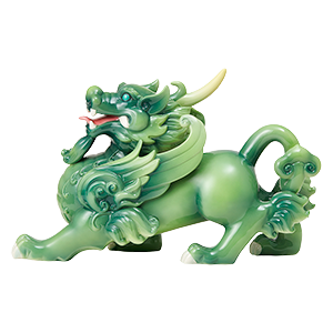 祥雞鳴 福氣臨 團聚齊心 迎合和事興 瓷品中,公雞昂首佇立,聲鳴響亮,象徵「功名得意」,母雞伴五隻小雞築巢嬉戲,寓意「五子登科」,家福業興。