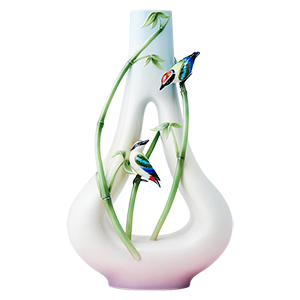 「海鶴來朝」瓷瓶以雙鶴為創作主題