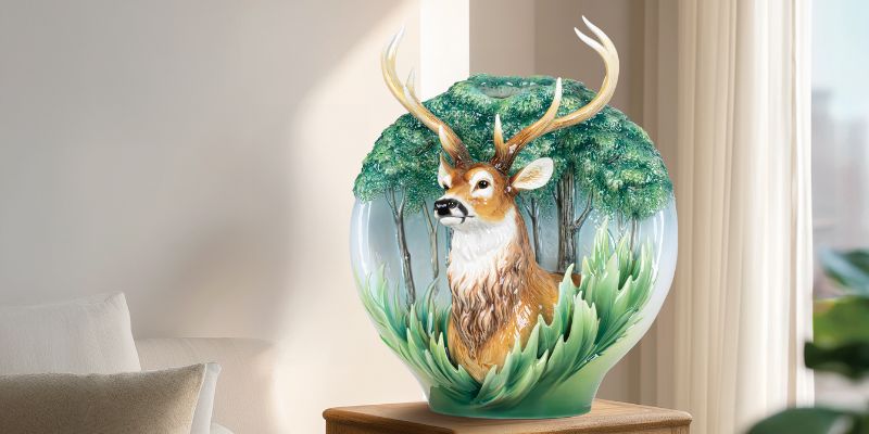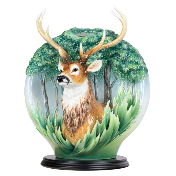 公鹿自林間步出,氣宇軒昂、沉穩自信,身為森林的王者,眼神從容自在,頭頂鹿角如冠,象徵祿位與尊榮。祈願收藏者在人生的林徑中,如鹿王般昂首闊步,君臨天下。