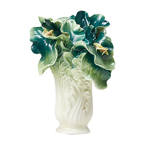 創作構想源自象徵主義畫家克林姆 (Gustav Klimt )1916年「佛烈德瑞克瑪麗亞畢爾的畫像」(Portrait of Friederike Maria Beer)。畫中,瑪麗亞穿襲的繽紛皮裘是百年前的流行時尚,其身後的古朝戰馬與兵將則取材於克林姆收藏的東方花器。瑪麗亞的靜謐與身後的喧囂充滿強烈對比,但是,整體畫面的和諧色彩及華美圖紋融合了傳統與現代,亦呈現東西方美學的美妙交融。「靜美的停駐」瓷品反映大千世界的萬千風貌,也帶領觀者穿越時光隧道,找尋到靜謐的永恆之美。